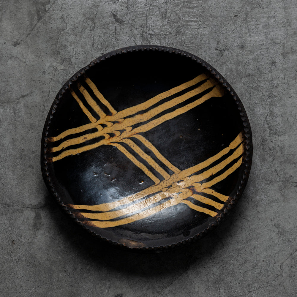 日本で「スリップウェア」というとおもに英国近世のやきものを指し、人物や動物文など鑑賞用の飾皿と、縞文はじめ抽象文の実用品(パイ皿)があります。彼地にさきがけ後者を美的に評価したのは日本人であり、代表はふたり、1920年代の柳宗悦と、1980年ごろの坂田和實でした。ことに骨董界における坂田さんの功績は大きく、(いまとなっては信じがたいけれど)スリップウェアが日本でほとんど売れなかったころから、こつこつと、抽象文の名品を日本に入れつづけました。今展は、坂田さんが請来したスリップウェア十数点ほか、欧州中世陶器や家具、コプト裂など西洋工芸を中心に、美術館 as it is の蔵品と古道具坂田由来の品々約60点を展観します(予約制)。