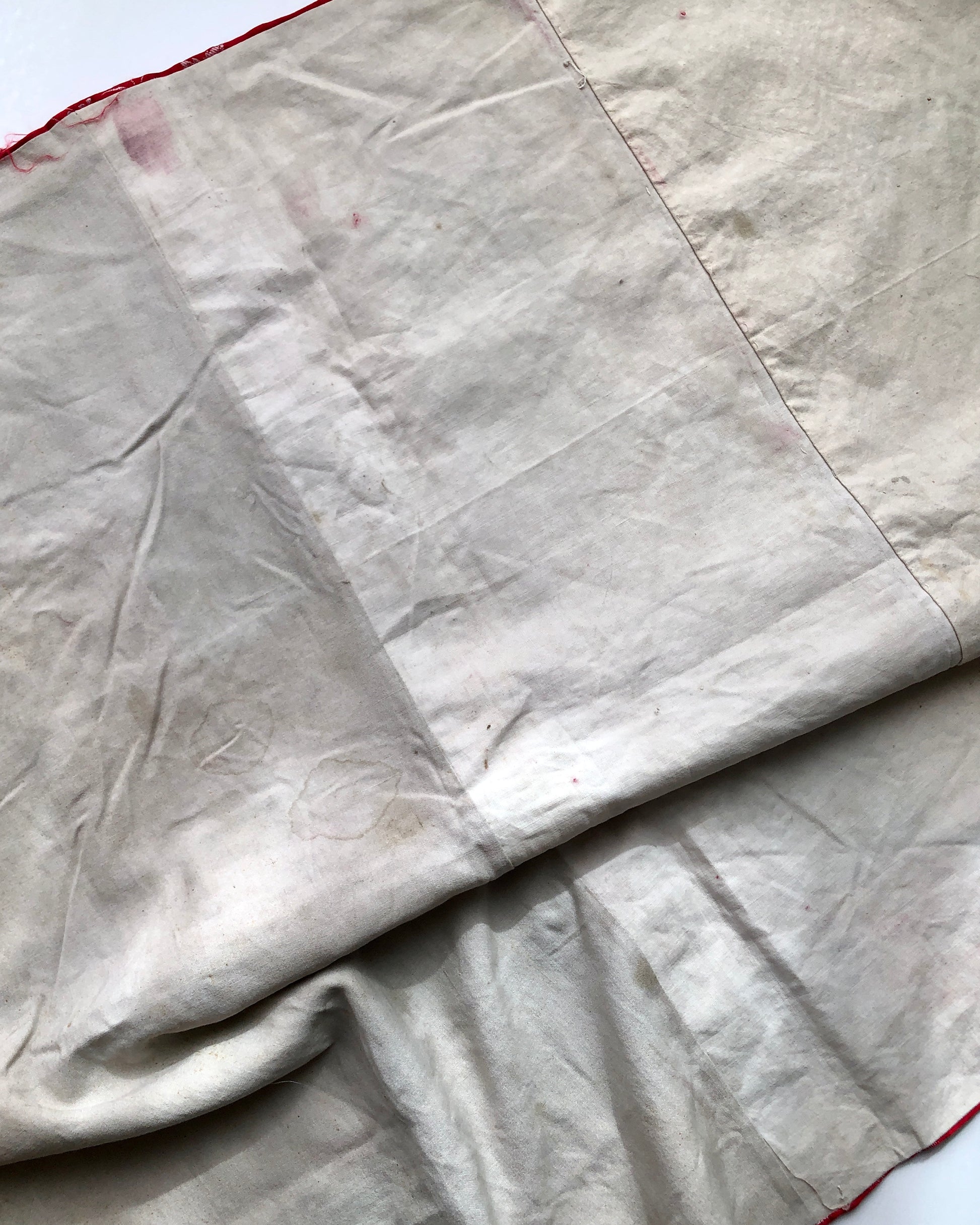 ほつれや変色、シミが多少ありますが、布を2枚重ねて仕上げたものなのでしっかりしています。