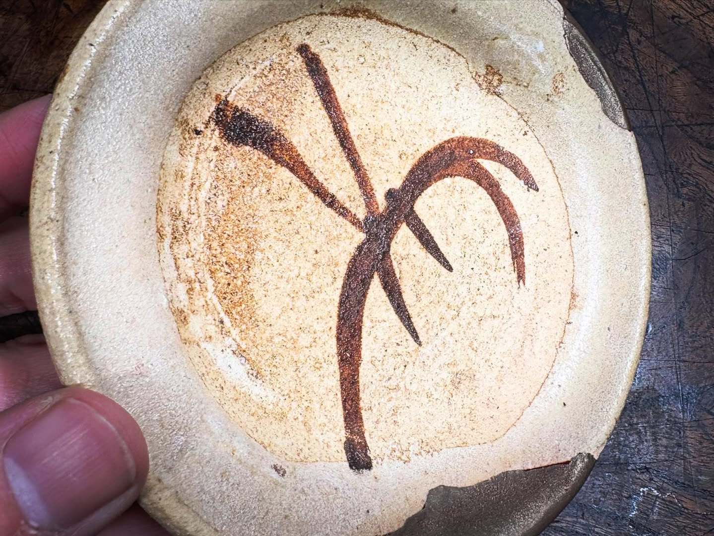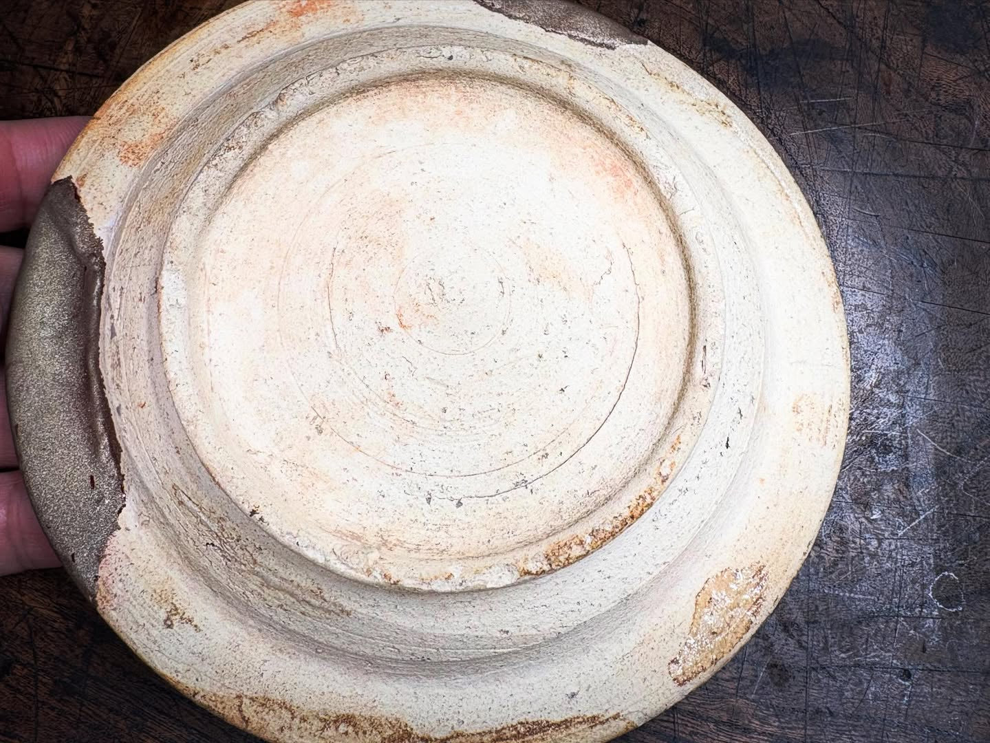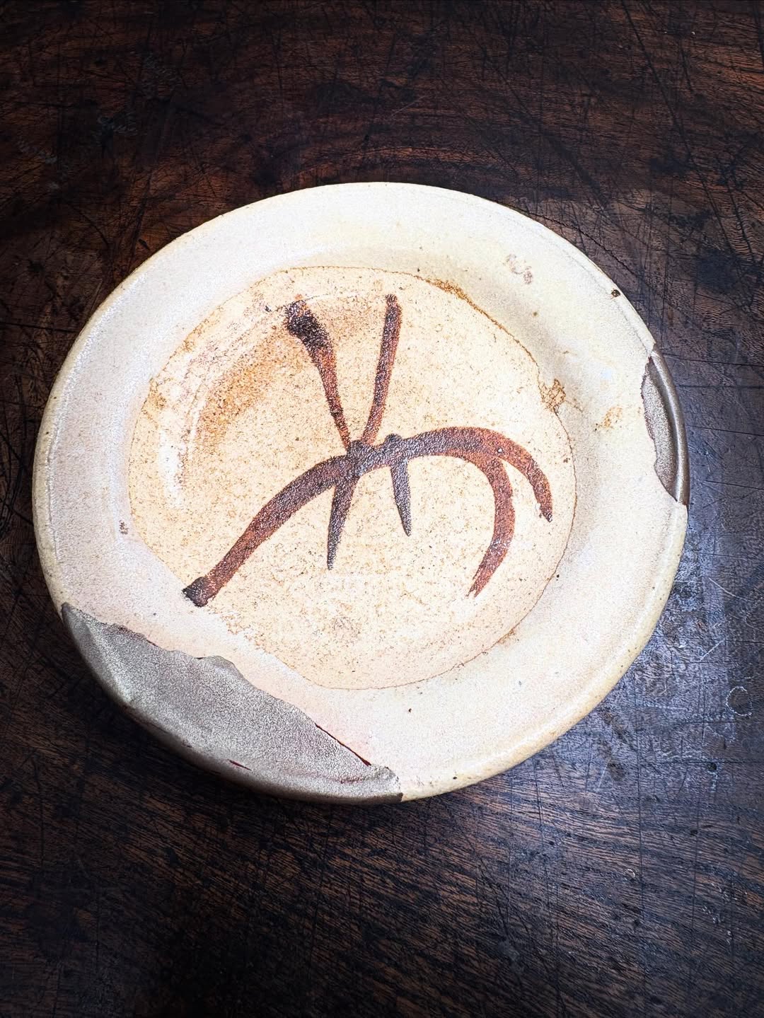 白洲正子「私の骨董」所載品と同手の、志野織部の小皿です。直径12センチ 高さ2.4センチ。江戸時代初期。発掘品のため口辺部に金継ぎ補修ありますが使用には問題ありません。参考のため「私の骨董」のページをUPしていますが本や所載品は付属しません。