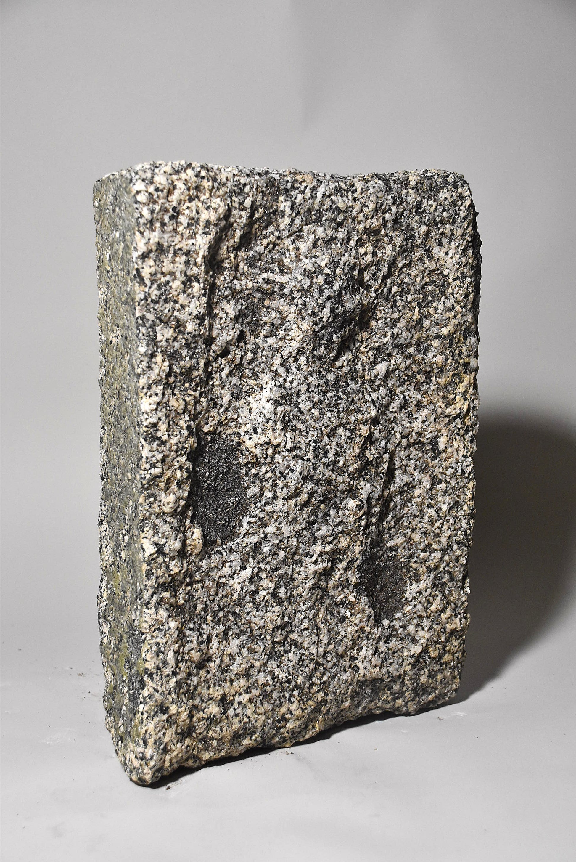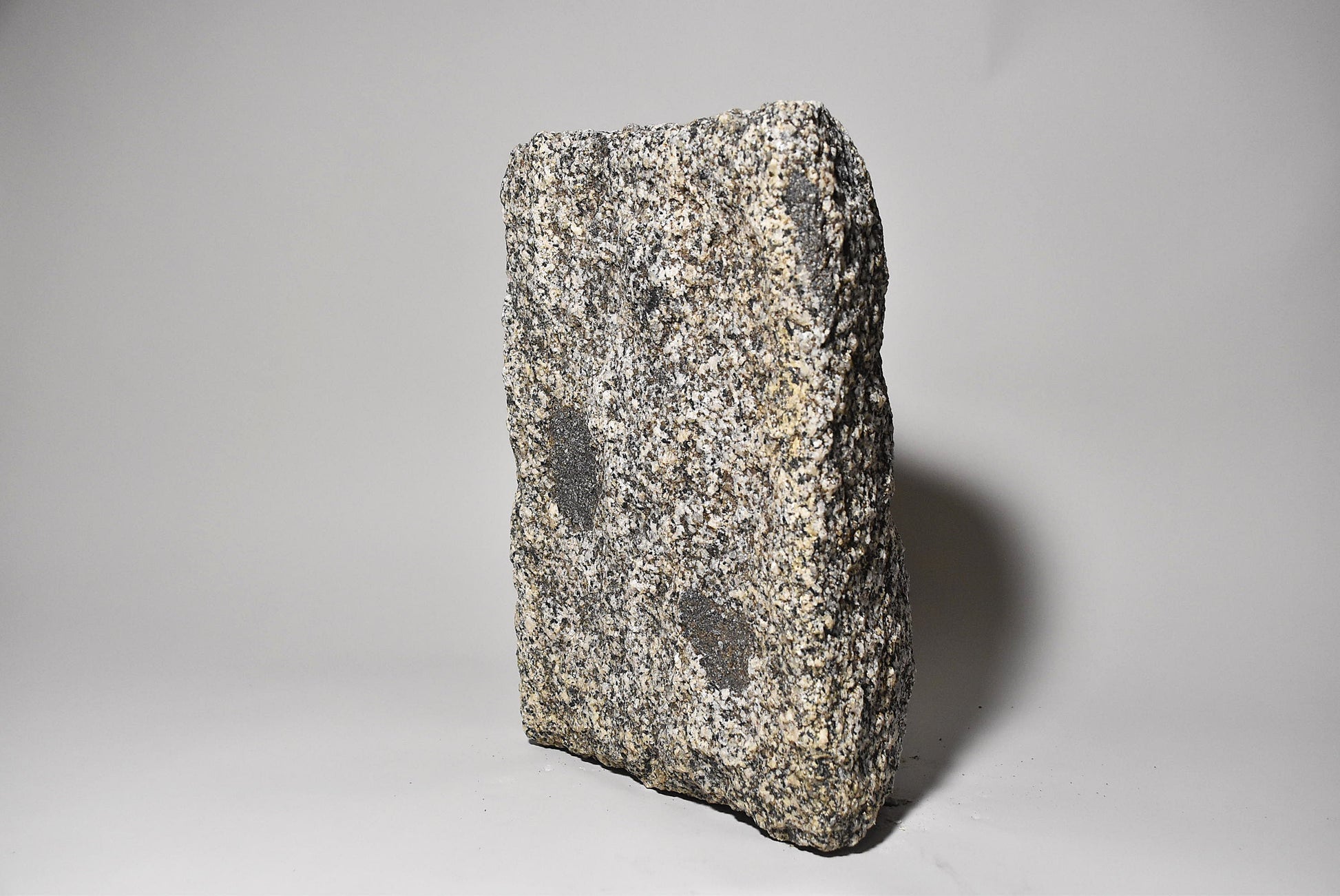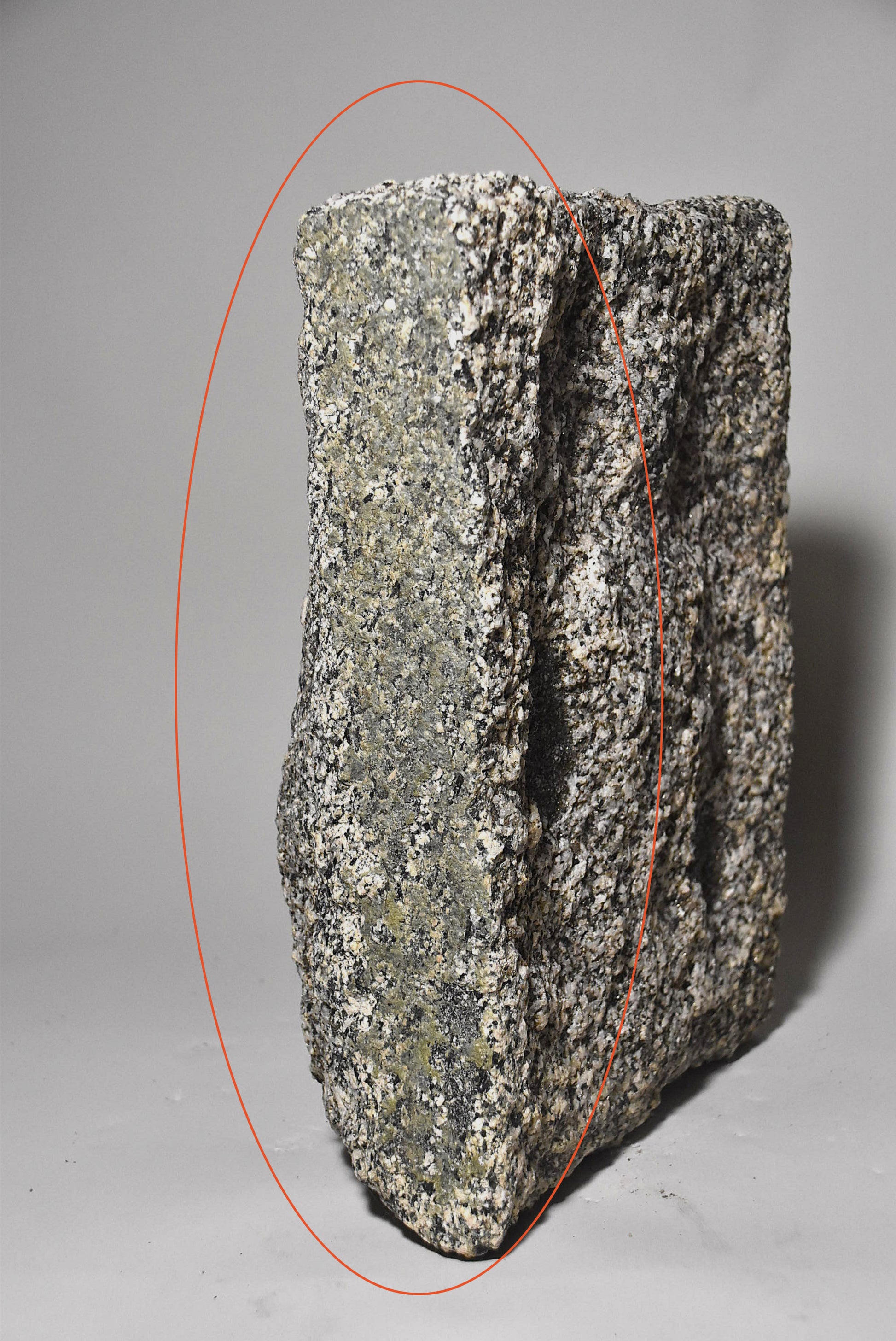 不純物の混じる目の粗い花崗岩に彫られた シンプル素朴な石仏で、