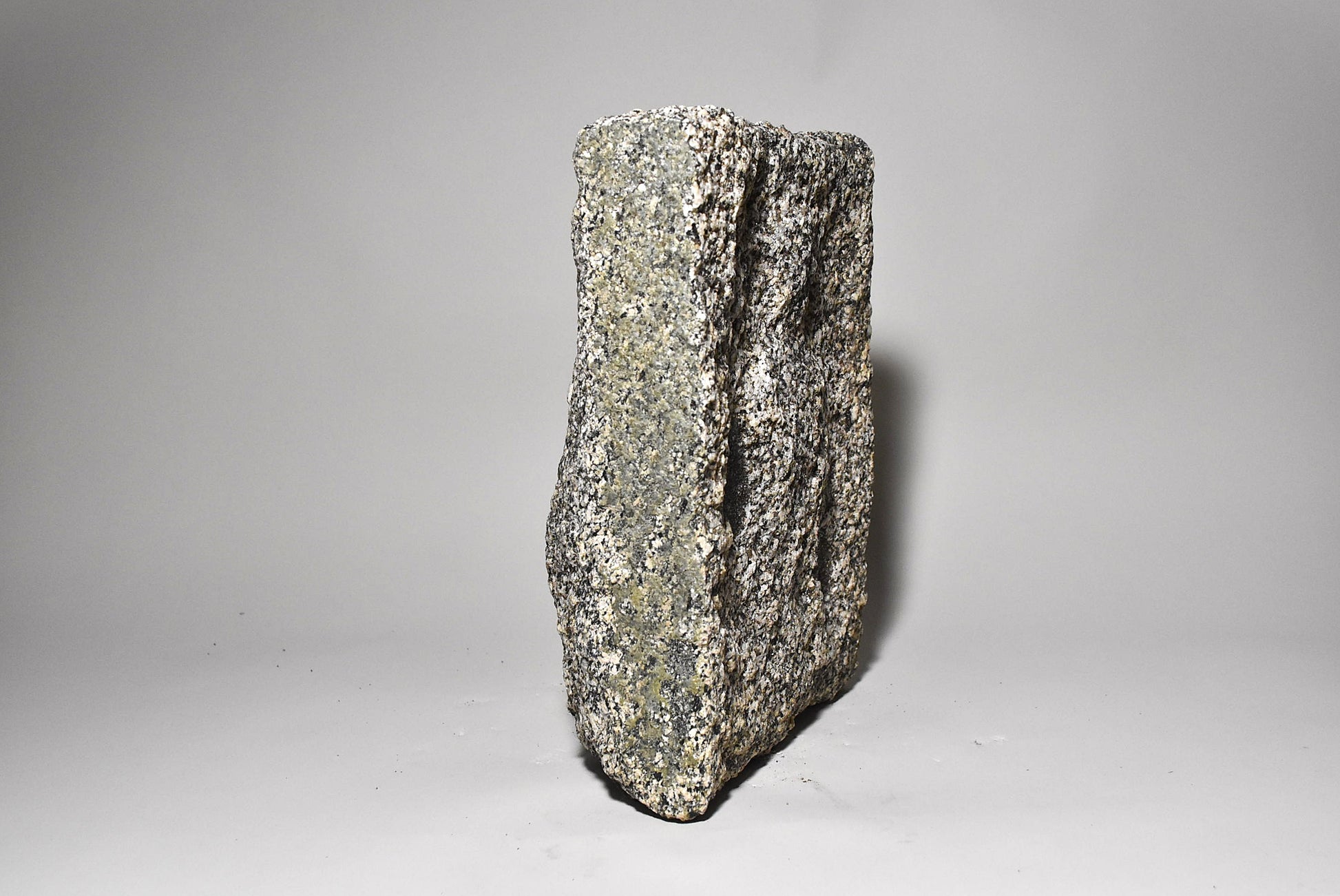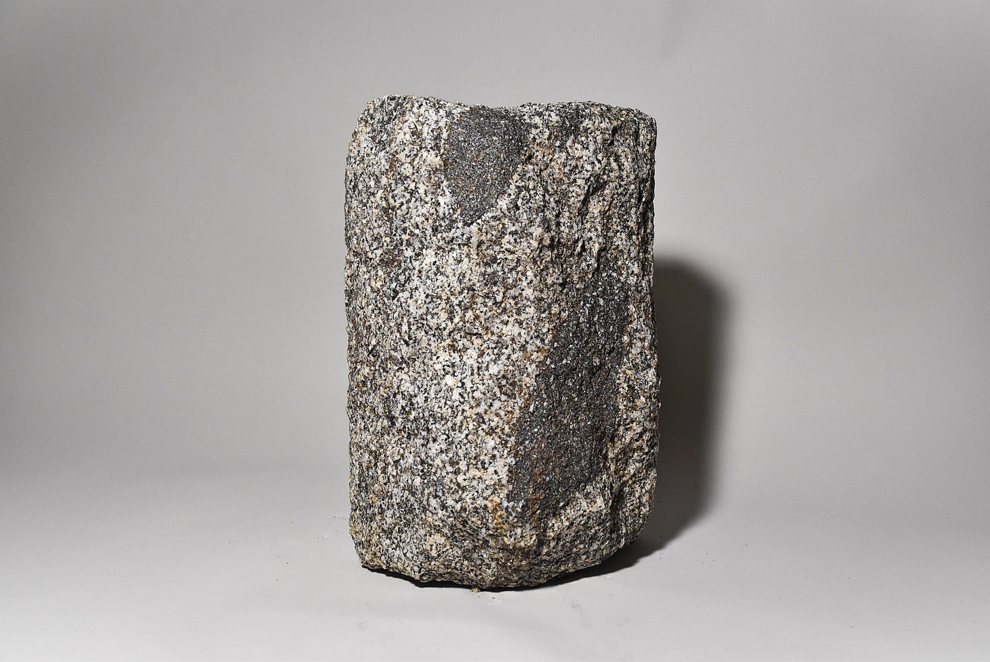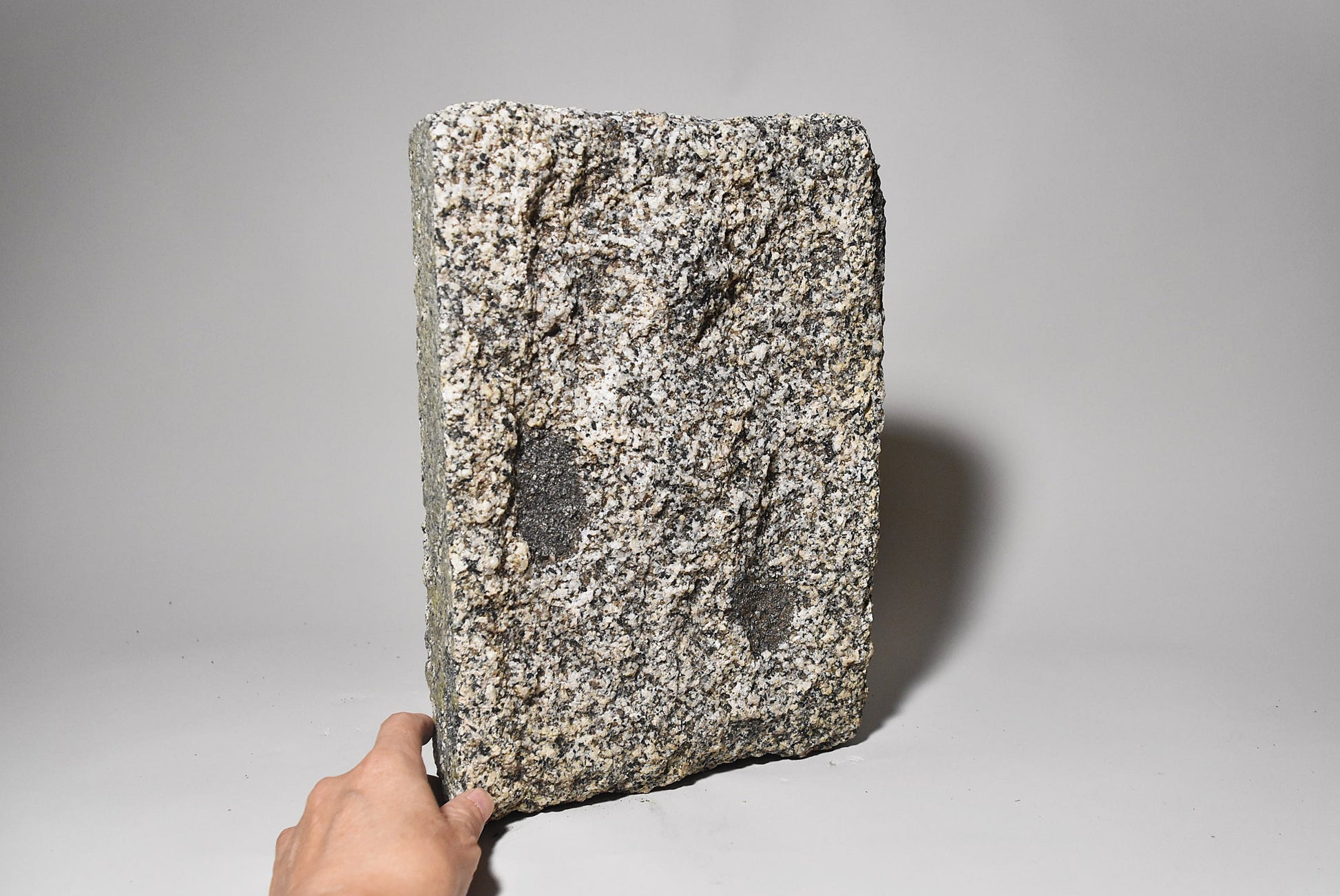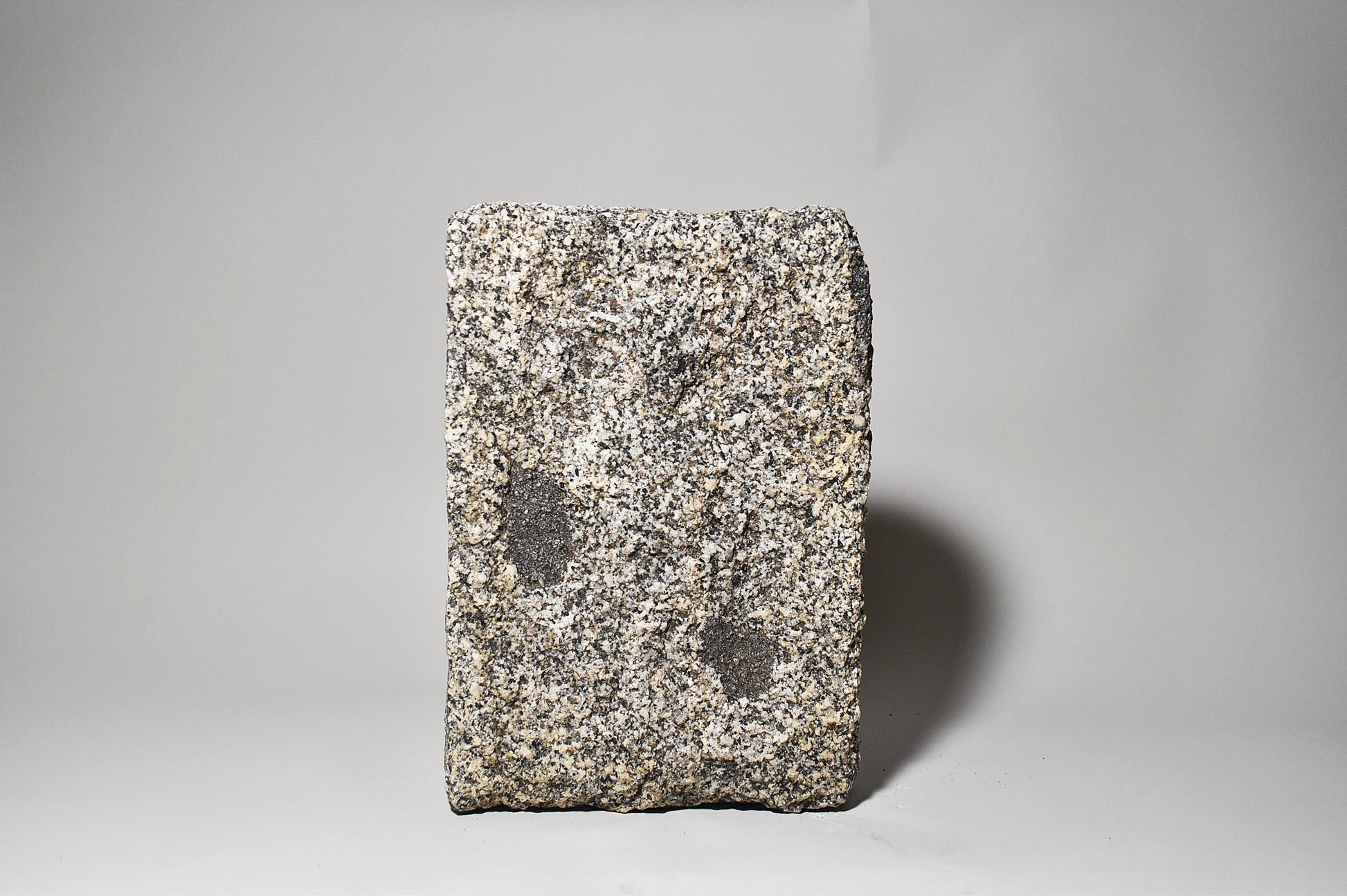 不純物の混じる目の粗い花崗岩に彫られた シンプル素朴な石仏で、
