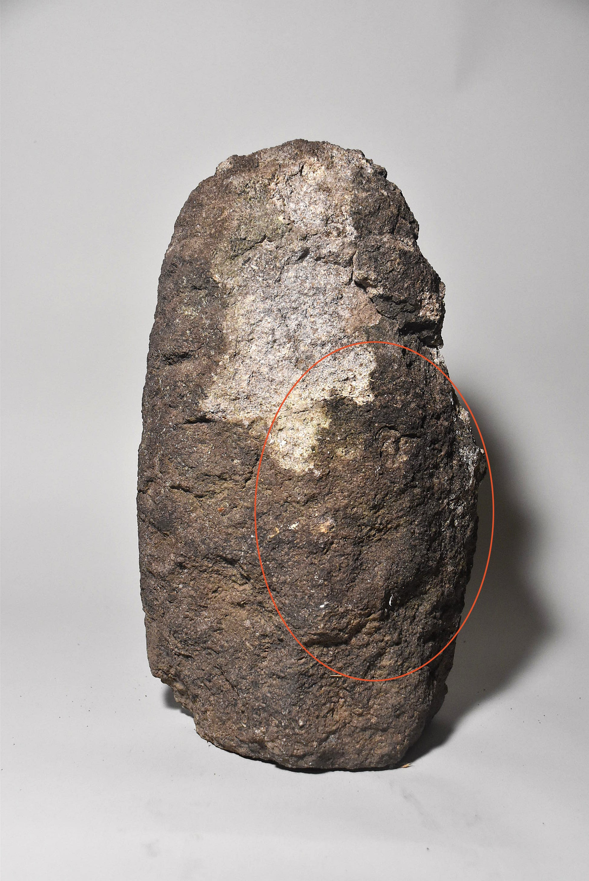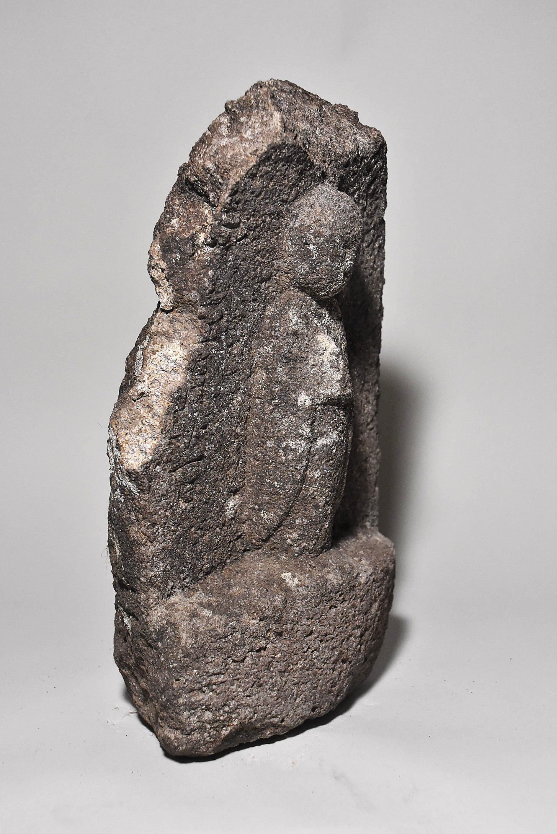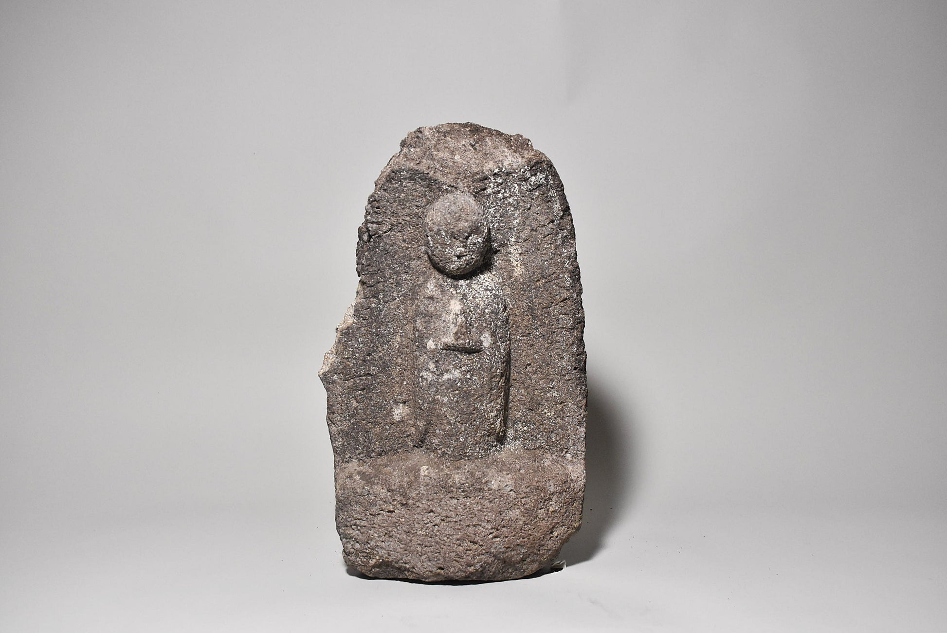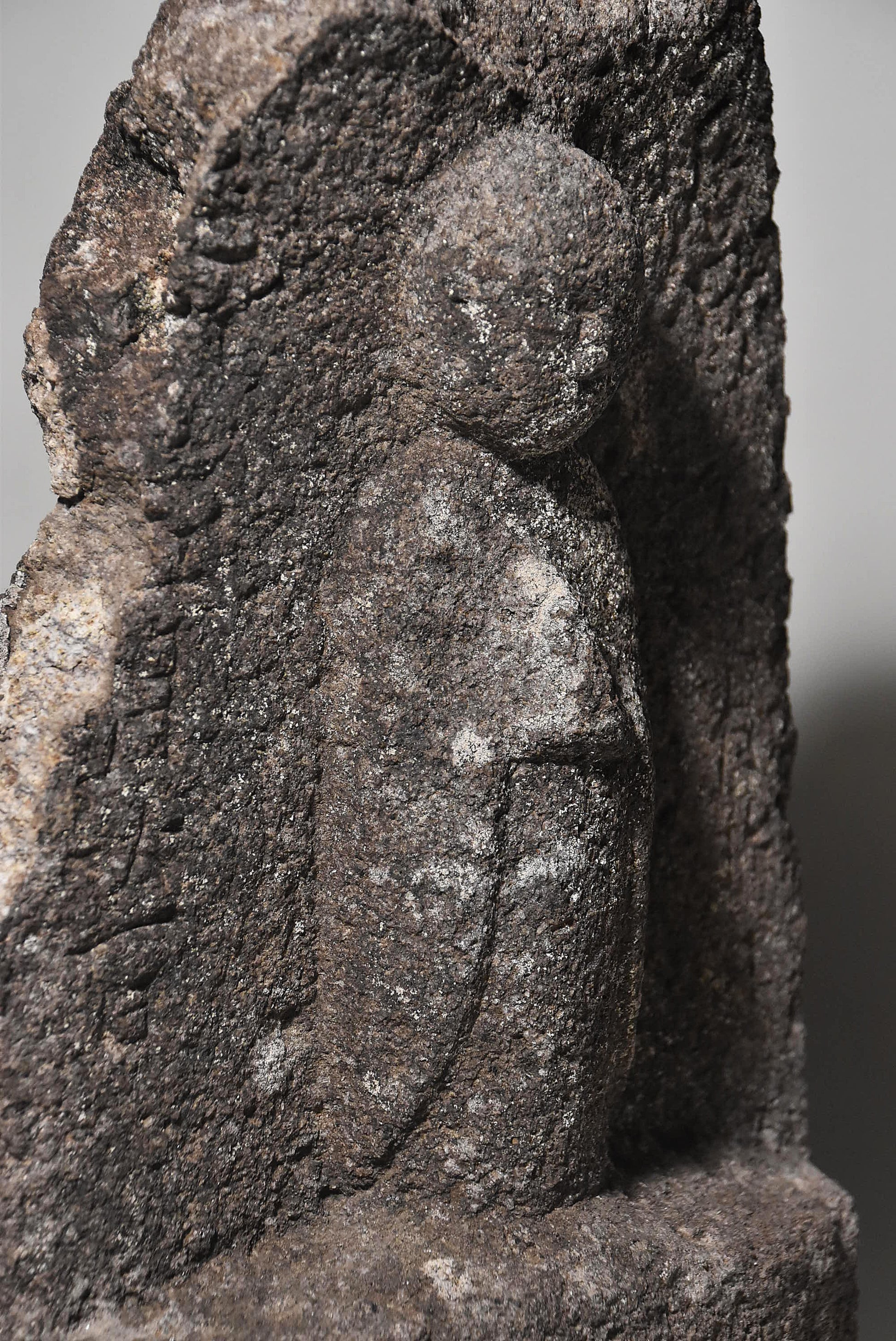 砂岩で経年劣化があり、光背(背面)に欠けがあります。
