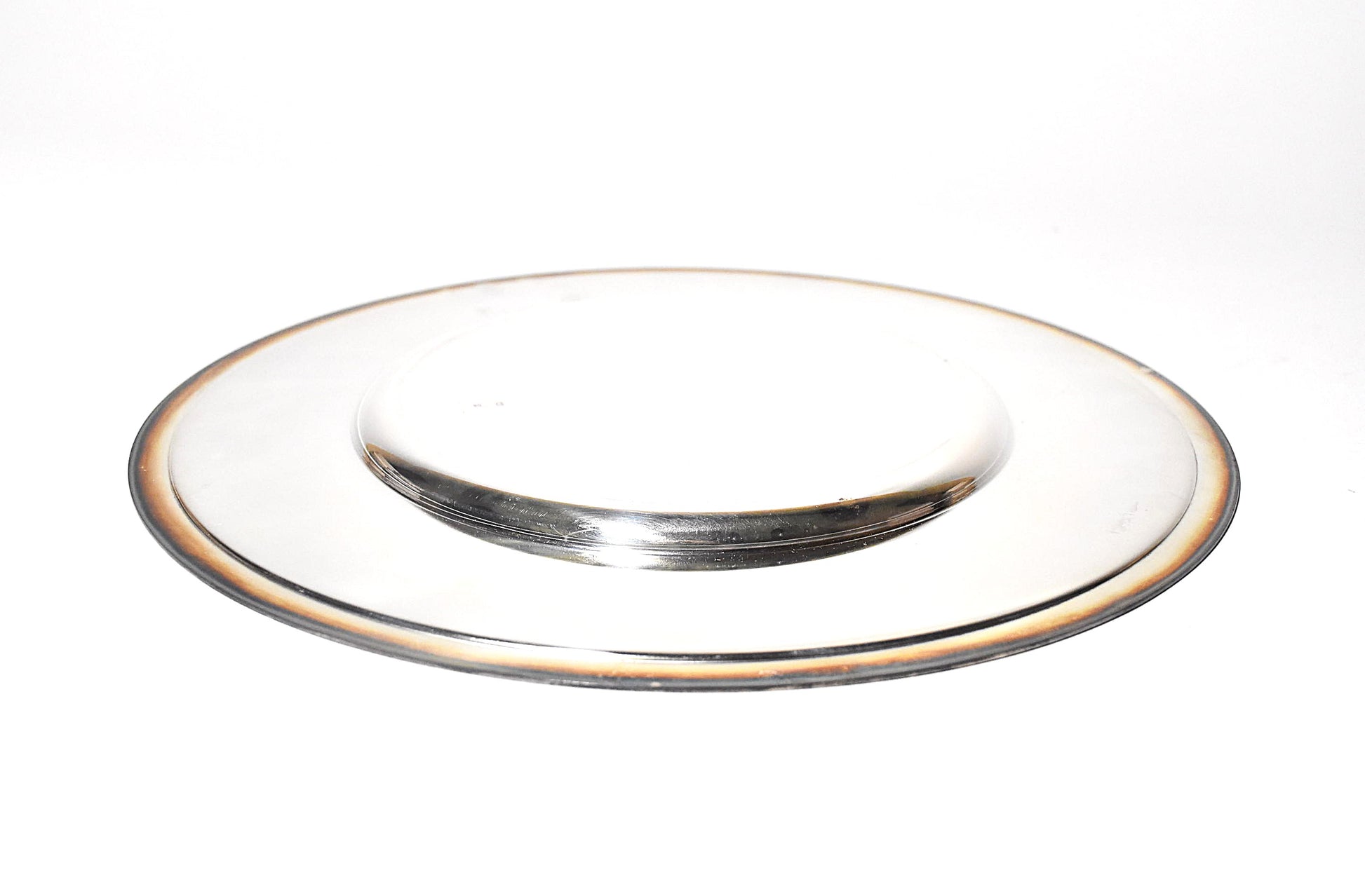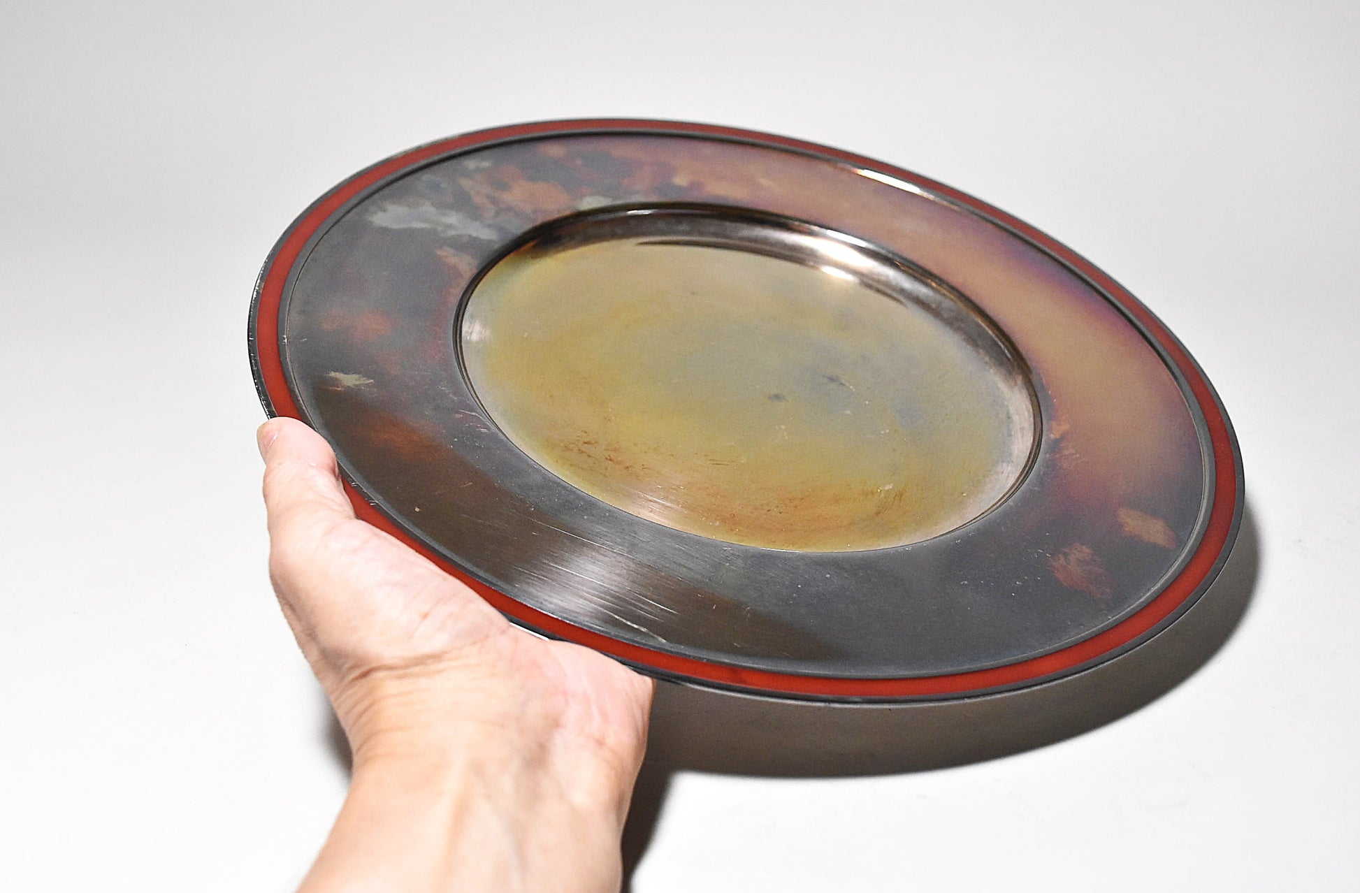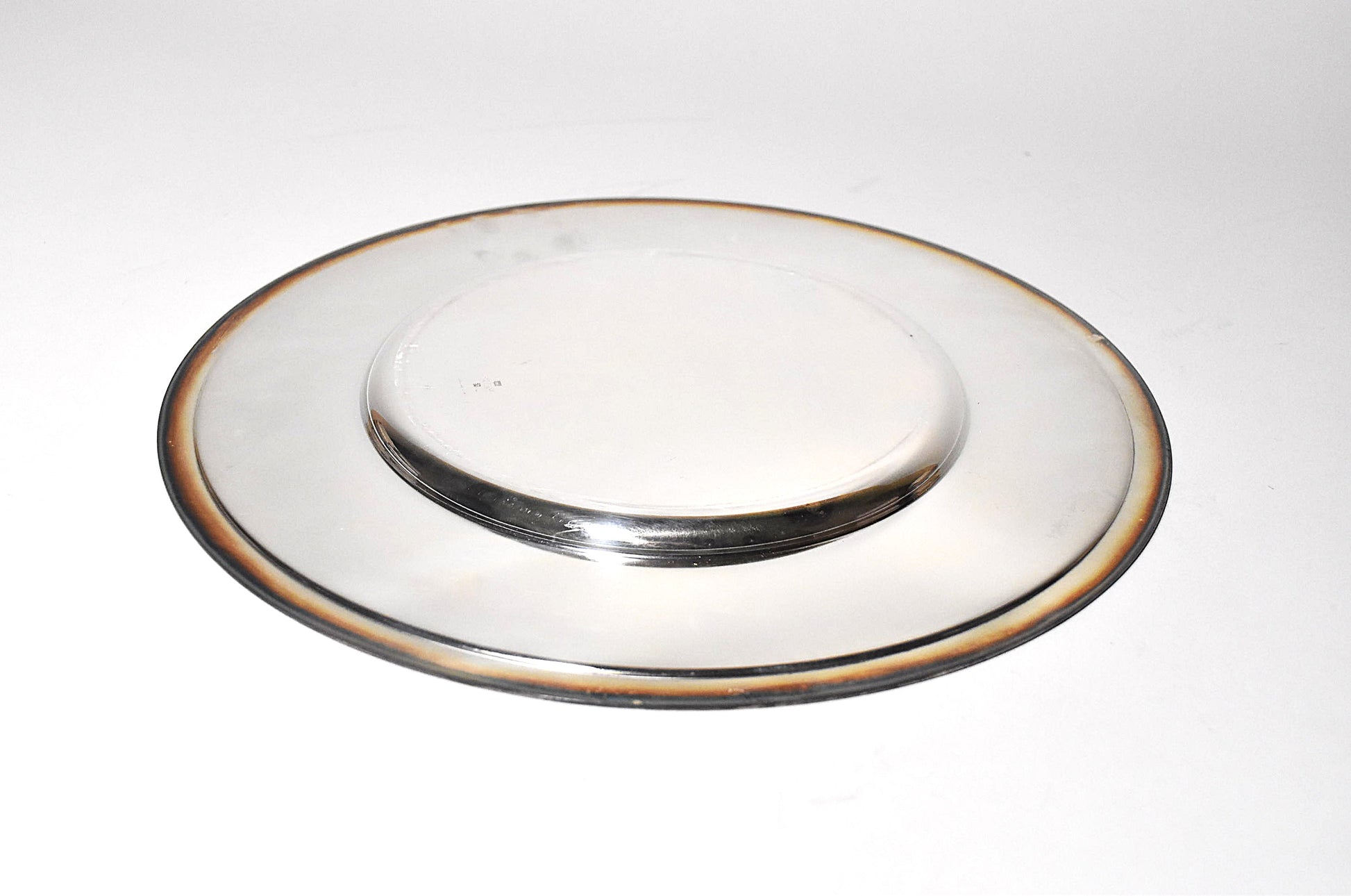 鏡の様にピカピカの銀メッキで、モダンな大皿です。