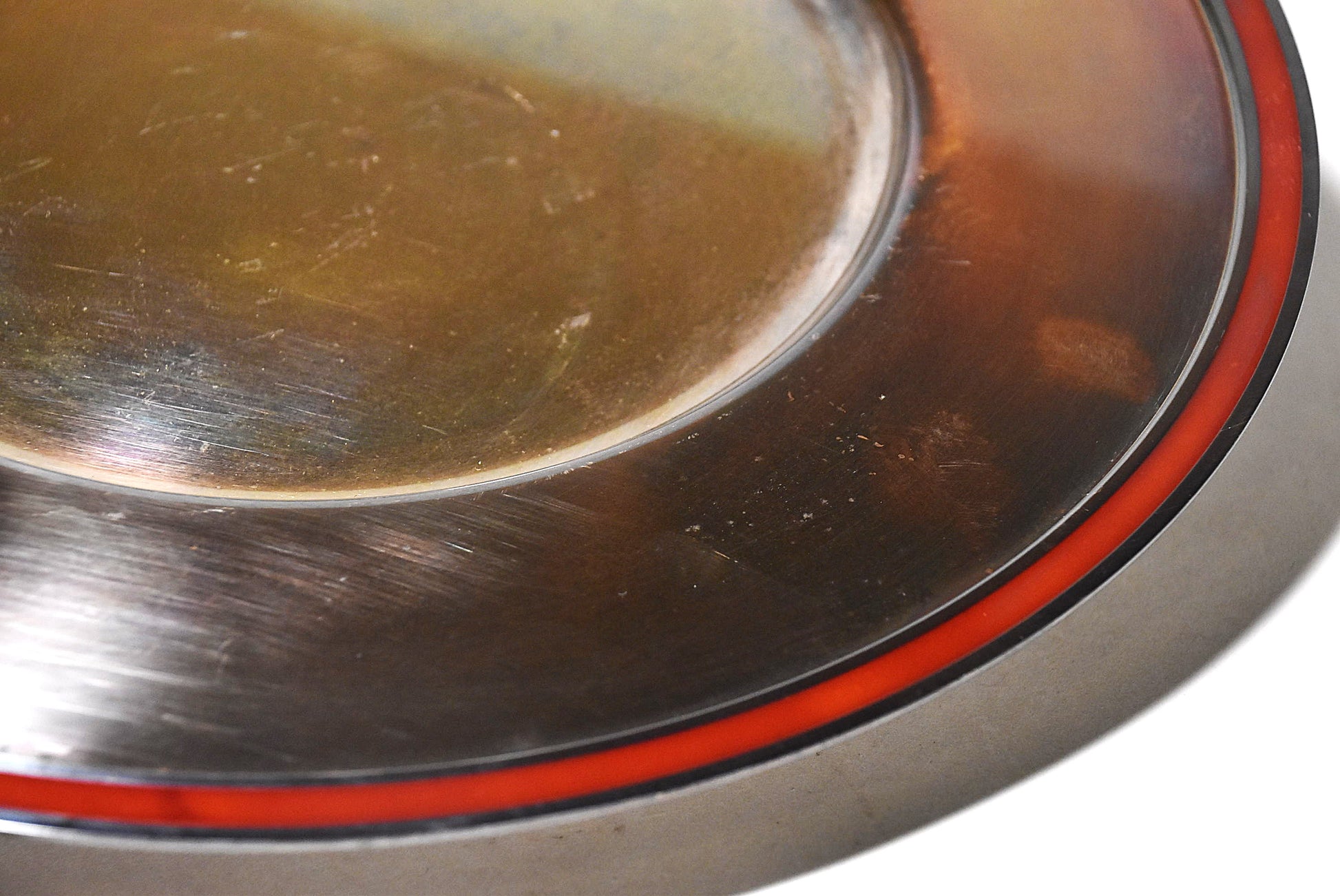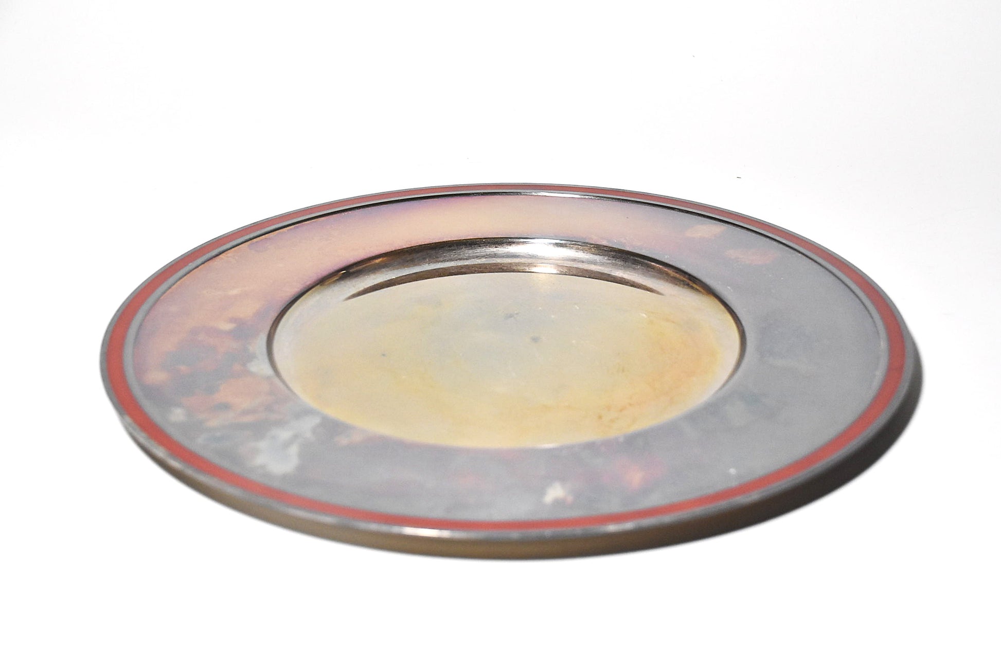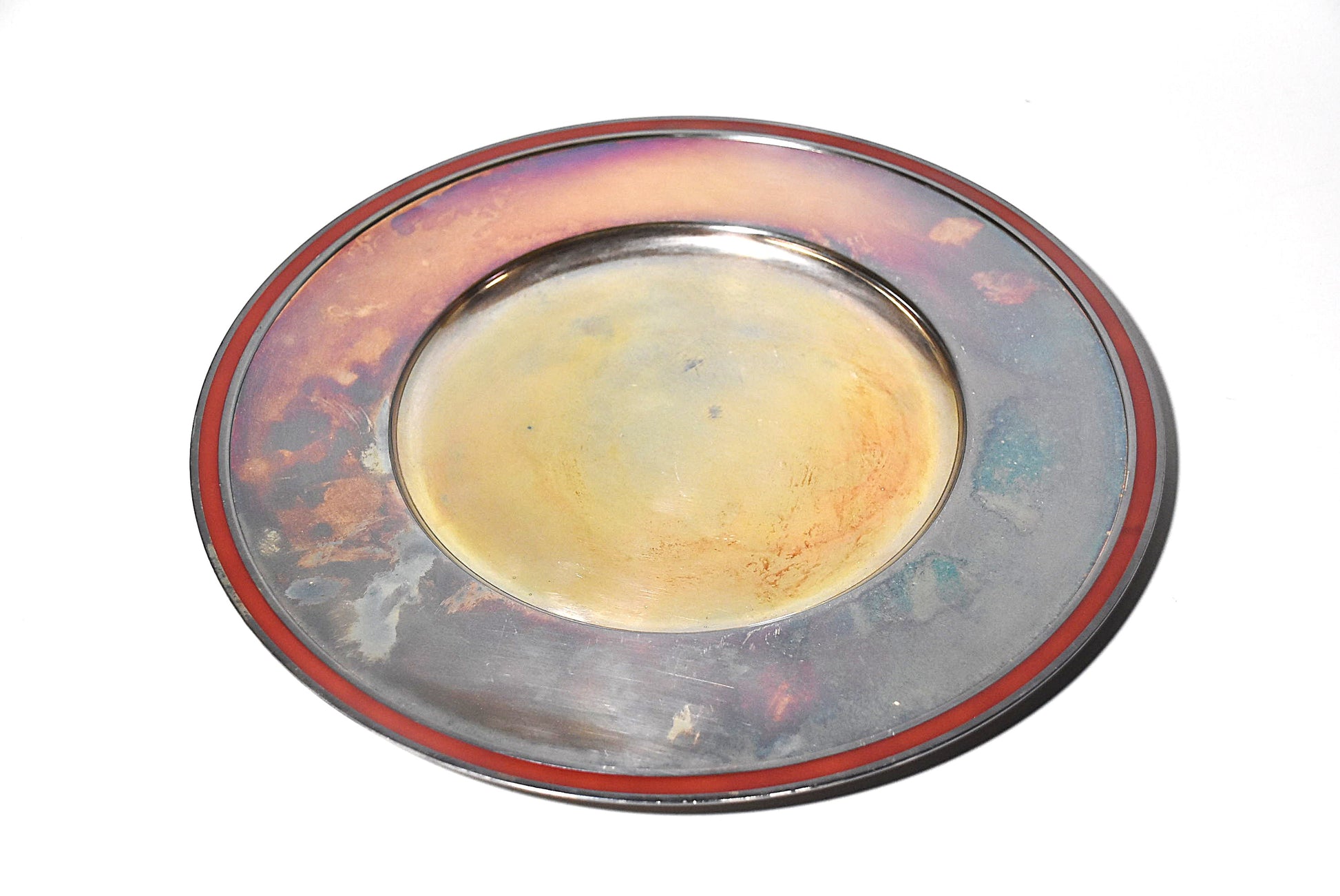 鏡の様にピカピカの銀メッキで、モダンな大皿です。