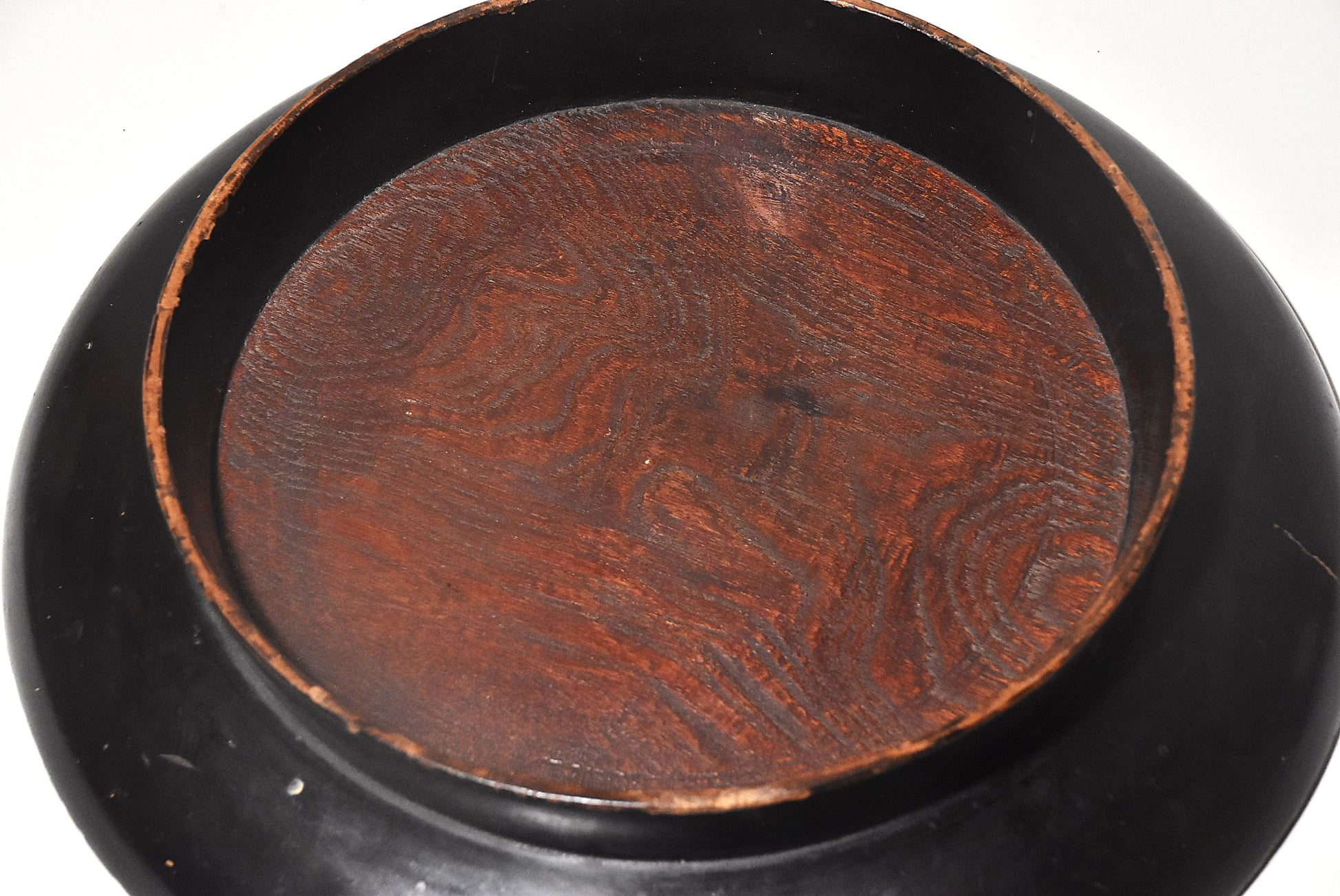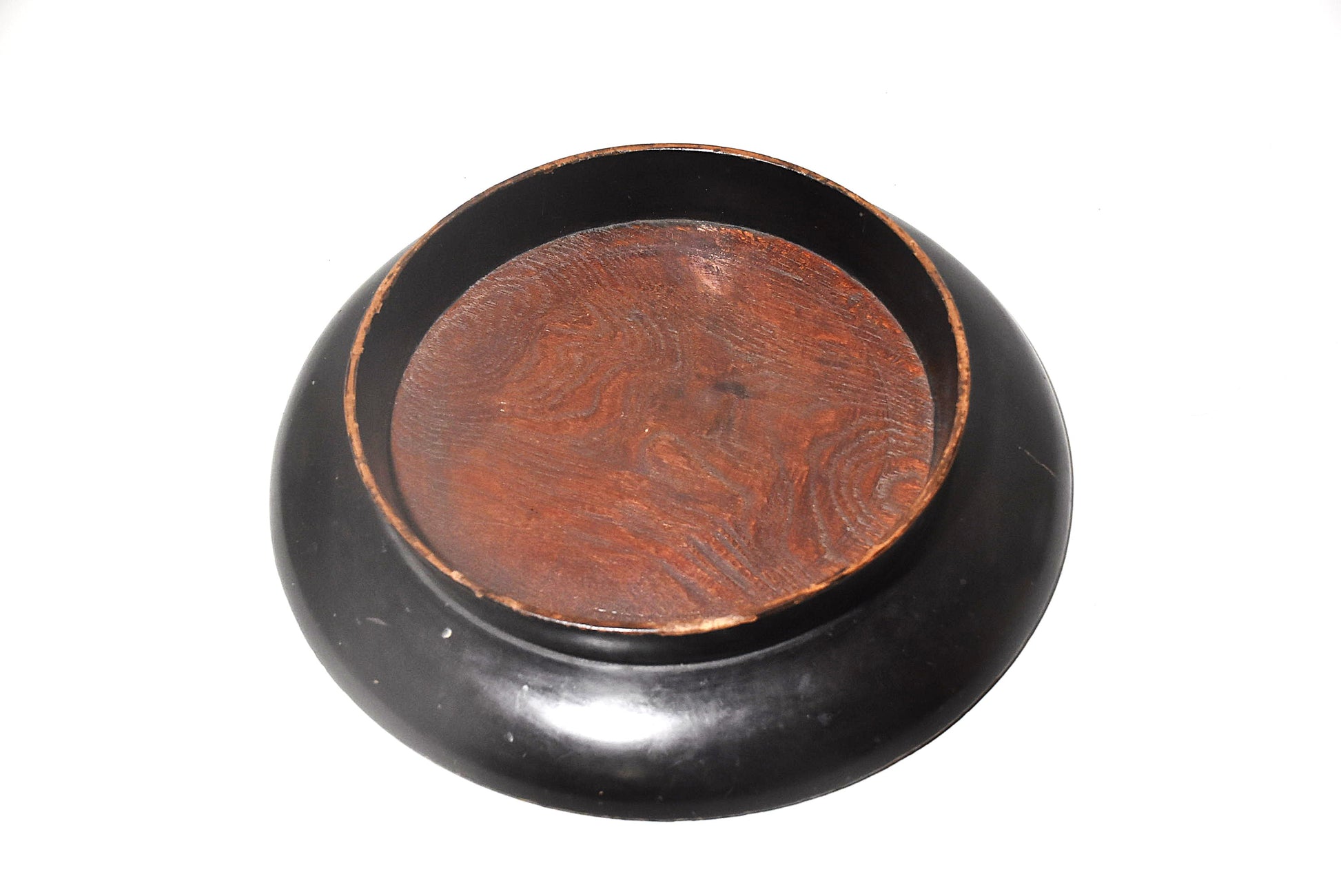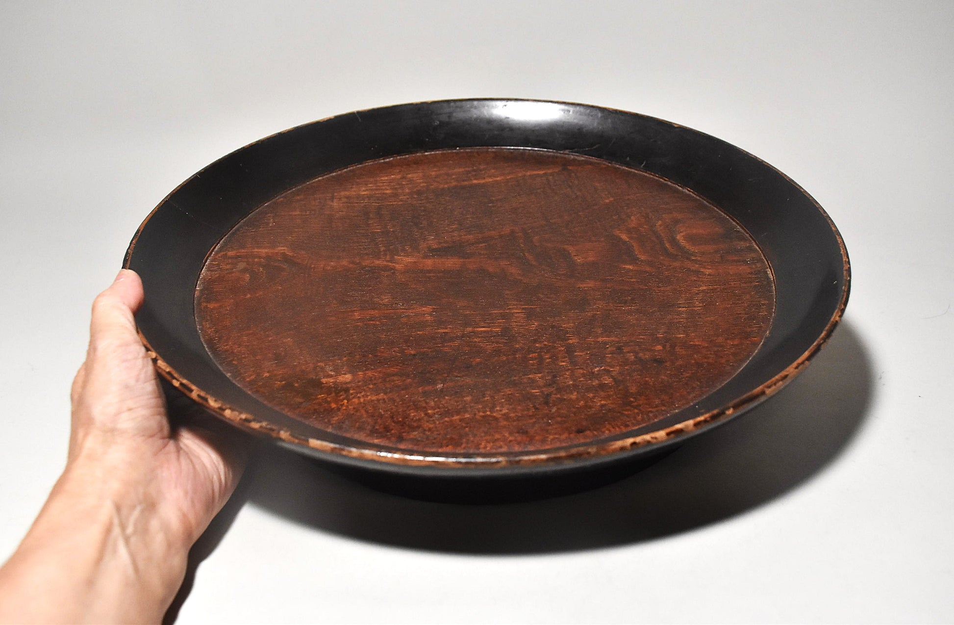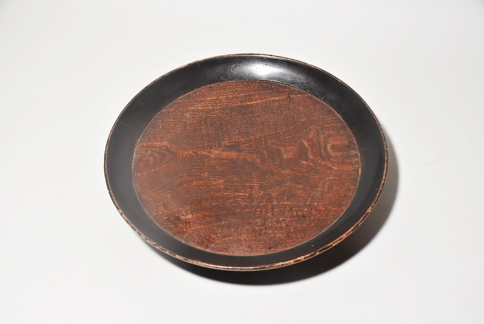 縁を黒漆とし、盆面を透き漆とする時代盆です。
