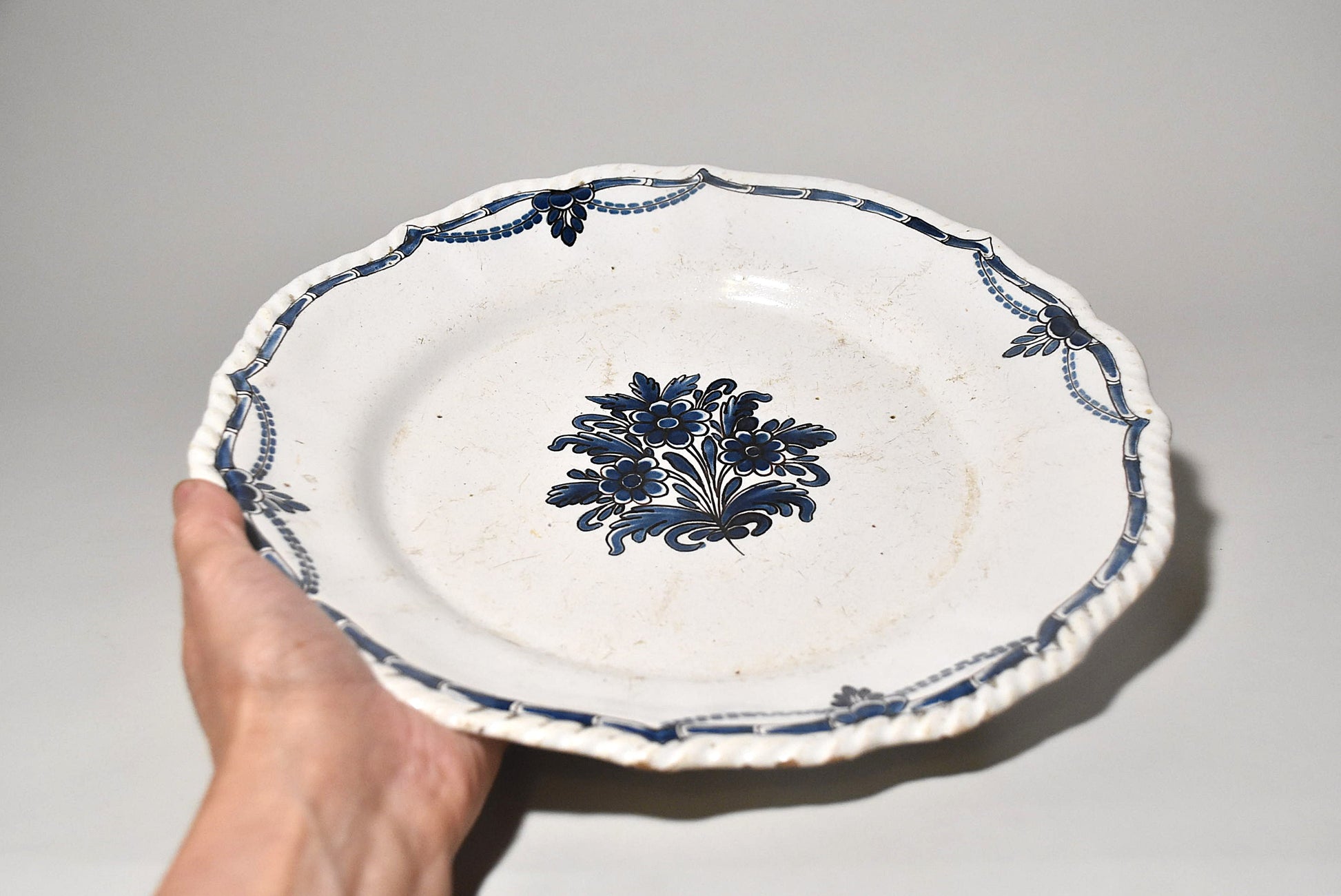 欧州軟陶花文大皿その1(18世紀)