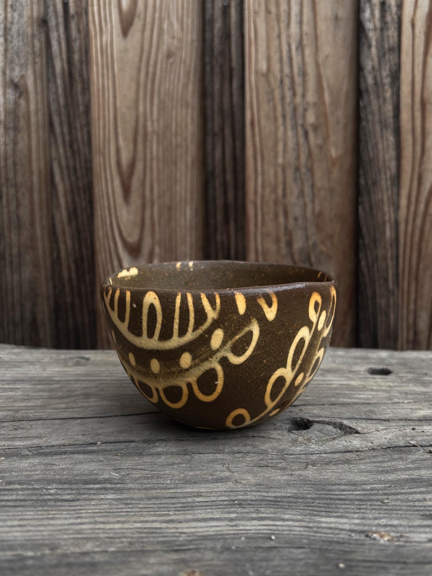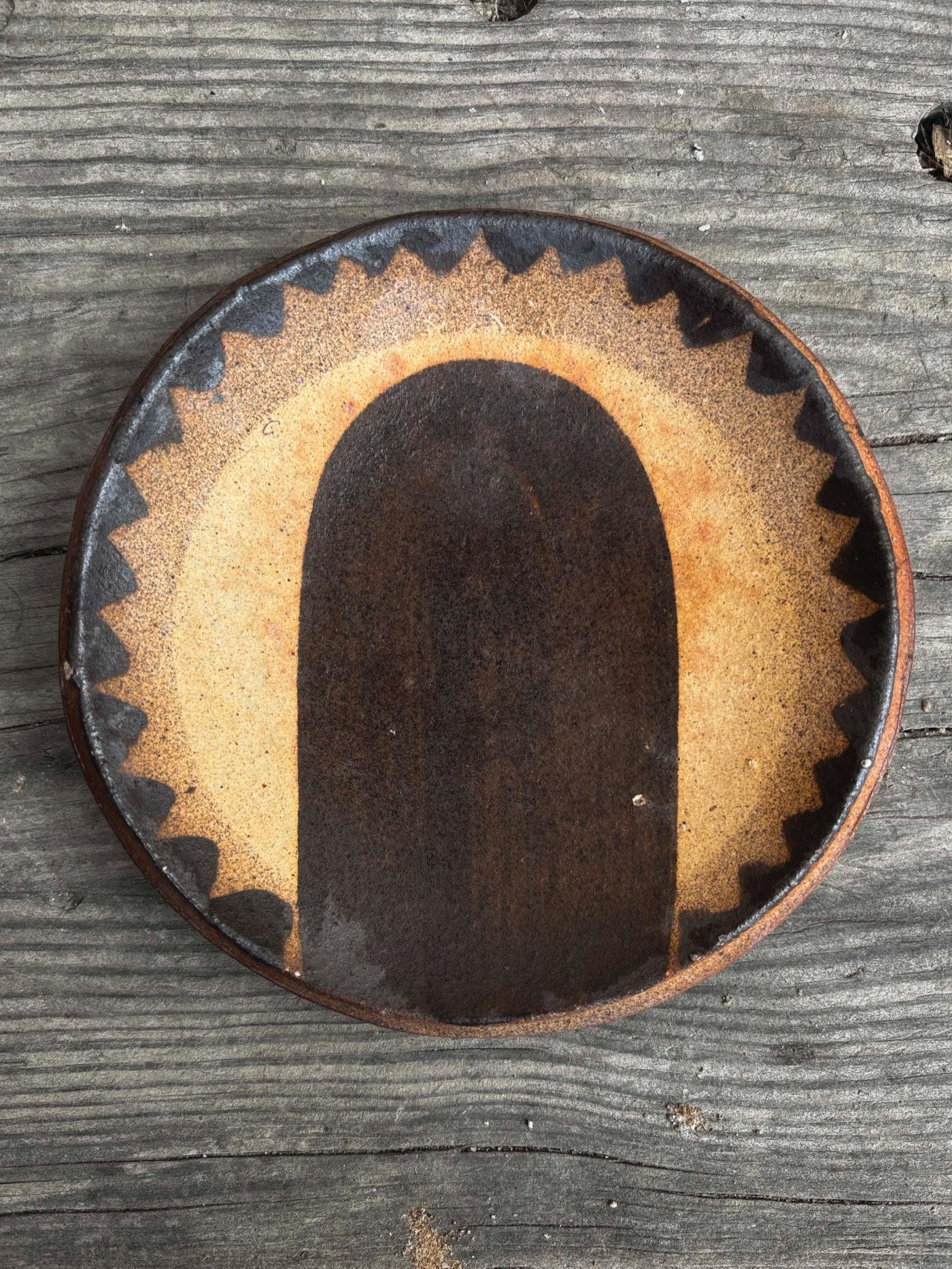 僕の仕事は英国古典のスリップウェアへの憧れから始まりました。初めは写しから始まり、その後、模様や釉薬、焼きを変えながら製作を続けてきました。最近は直接的に写す事はせず、古物から感じるノリやテンポと自分を合わせて物を作っています。
